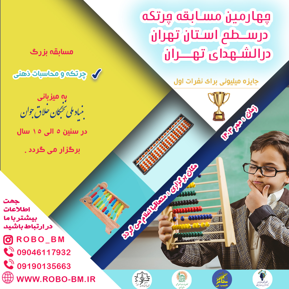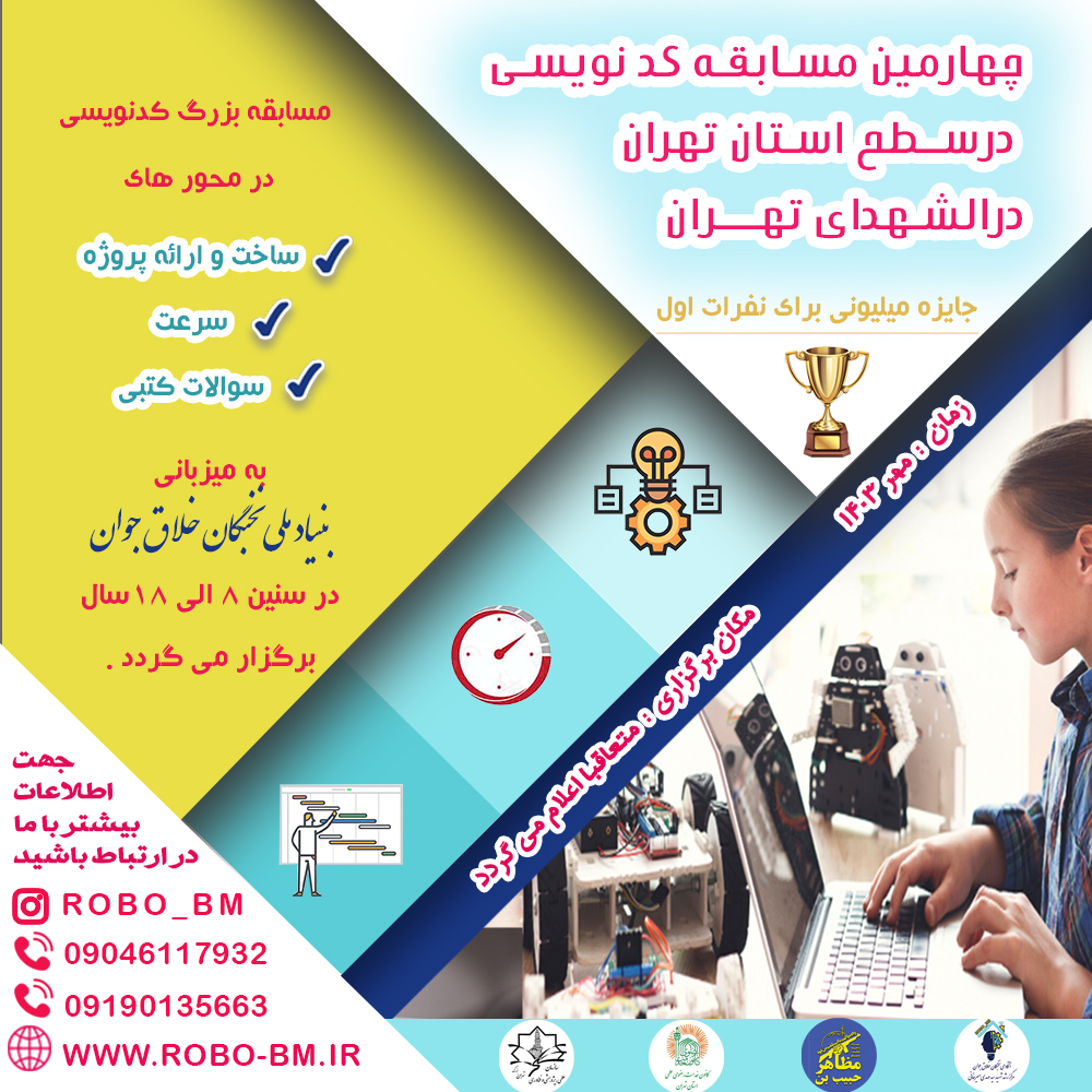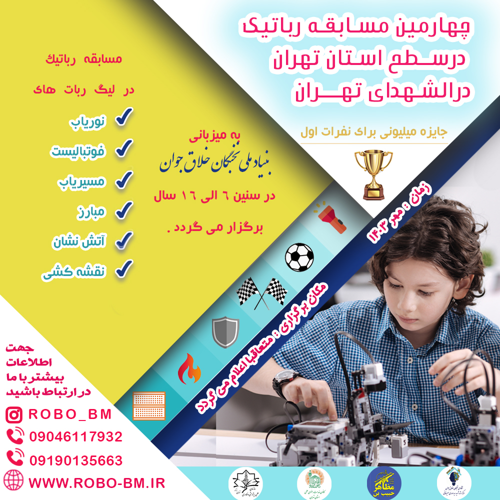 📌 بر همین اساس باتوجه به خلاقیت و توانمندی کودکان و نوجوانان در زمینه رباتیک ، برنامه نویسی و چرتکه با هدف ایجاد انگیزه ، حس رقابت ، شناخت نقاط ضعف و قوت و کسب تجربه بیشتر ، از شما جهت حضور در این رویداد بزرگ رسما دعوت به عمل می آوریم.
