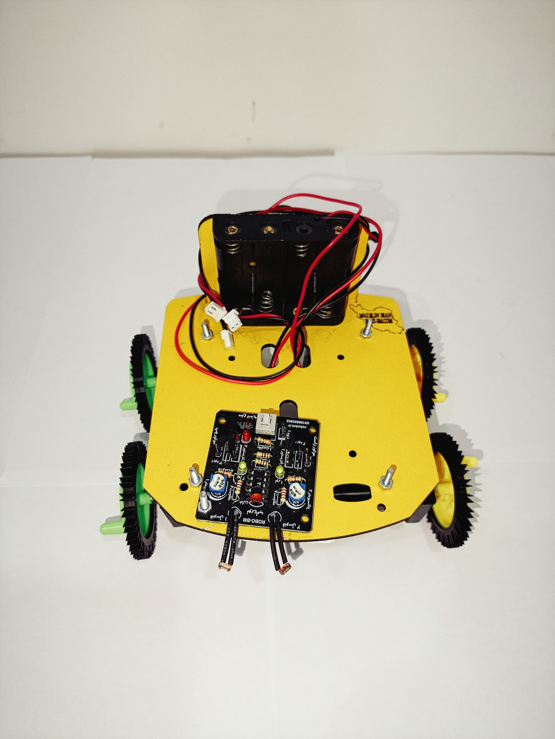 این ربات که تشکیل شده از فیبر مدار چاپی ، مقاومت ها ، خازن ، LED ، سیم دوپین ،