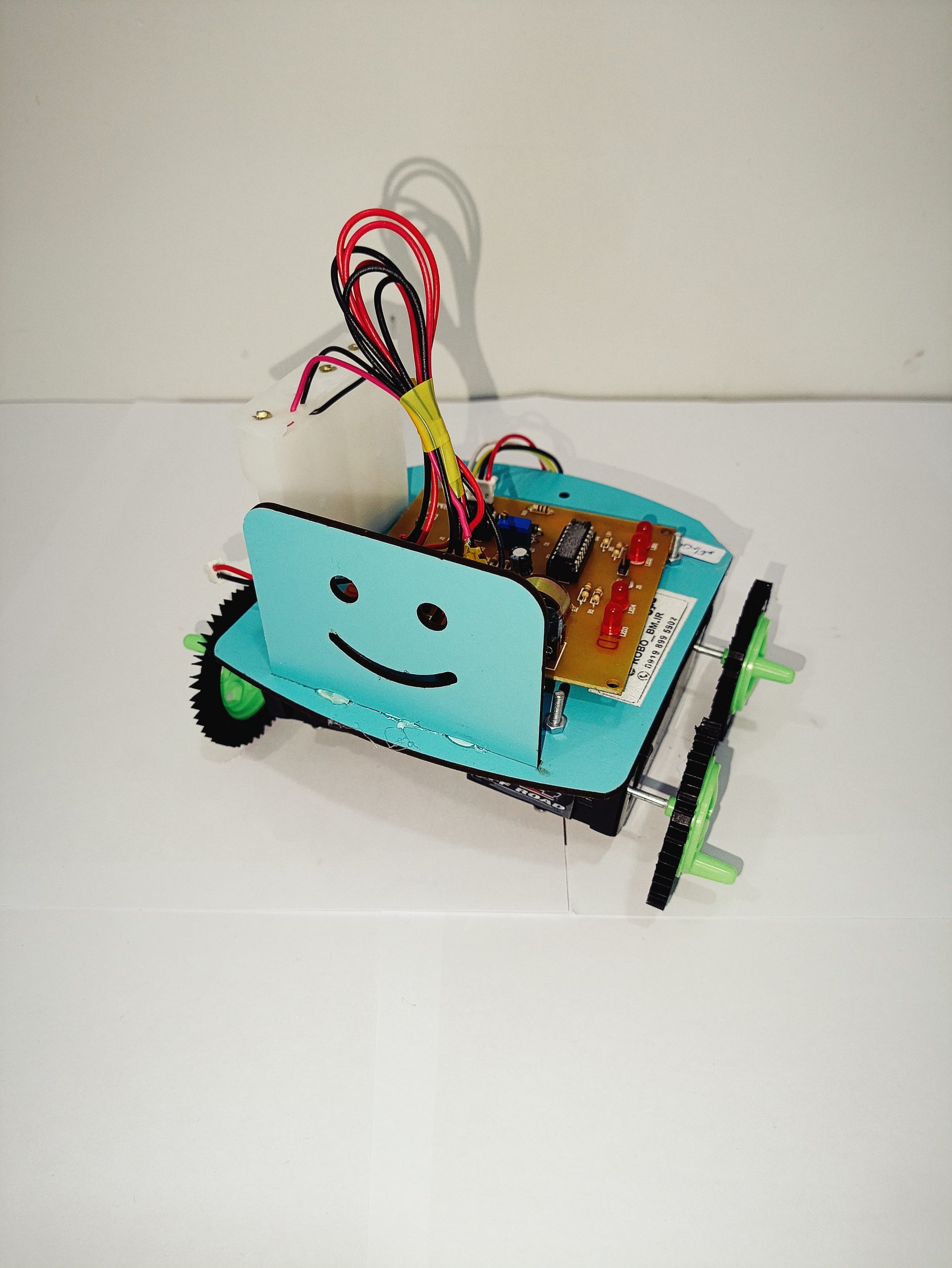این ربات که تشکیل شده از فیبر مدار چاپی ، مقاومت ها ، ولوم ، خازن ، LED ، سیم