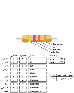 مقدار مقاومت را میشود از روی نوارهای رنگی روی آن فهمید.